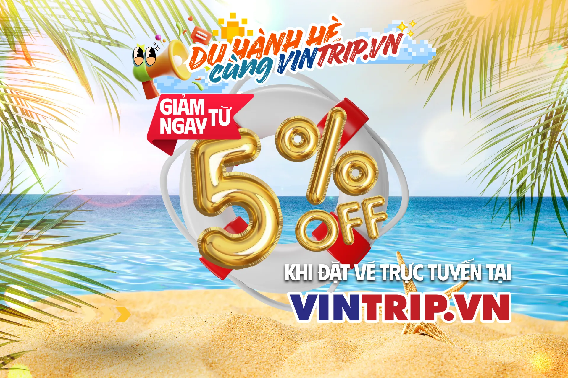 Bên cạnh các chương trình hấp dẫn tại gian hàng PCV GROUP, VINTRIP.VN luôn dành tặng ưu đãi hấp dẫn cho các tín đồ "săn deal" online. Chỉ cần vài thao tác nhấp chuột đặt vé trực tiếp trên hệ thống, bạn sẽ được giảm ngay từ 5% giá trị đơn hàng.